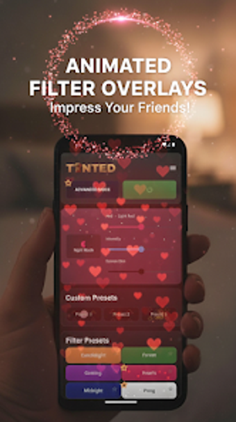 تطبيق Tinted - Screen Shade Filters هو تطبيق مفيد متعدد الاستخدامات مصمم لأجهزة Android، يوفر للمستخدمين مجموعة من الميزات لتعزيز تجربة مشاهدة الشاشة. يقدم خيارات تصفية مختلفة مثل تصفية الضوء الأزرق، وتعتيم الشاشة، ووضع الليل، وكل ذلك دون الحاجة إلى صلاحيات الروت. يمكن للمستخدمين اختيار من مجموعة من الألوان المخصصة لأنشطة معينة مثل القراءة، والألعاب، أو مجرد الاسترخاء في الليل. يدعم التطبيق أيضًا إعدادات مسبقة مخصصة لتناسب التفضيلات الشخصية، مما يجعله قابلاً للتكيف مع الأذواق الفردية.